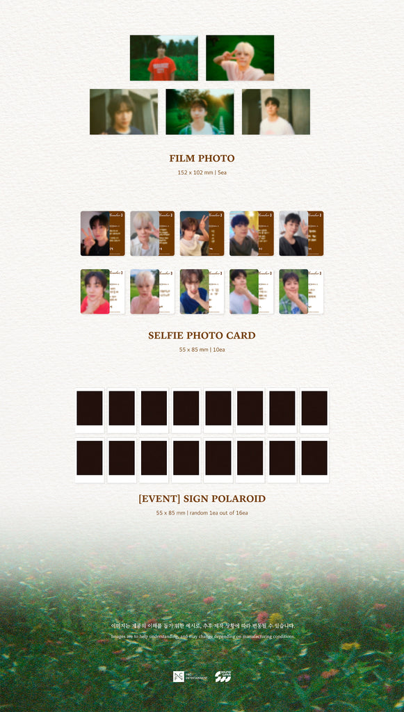 26p Desk Calendar + 184p Photo Essay Book + Paper Belly Band (Random 1 out of 5) + Bookmark + Folded Poster Calendar + Note Keyring + 5 Film Photos + 10 Selfie Photocards