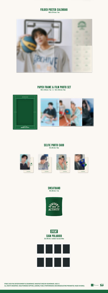 26p Desk Calendar + 184p Photo Essay Book + Paper Belly Band (Random 1 out of 5) + Bookmark + Folded Poster Calendar + Note Keyring + 5 Film Photos + 10 Selfie Photocards