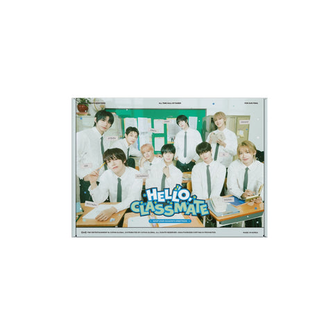 26p Desk Calendar + 120p Diary + 56p Photobook + 9 Student ID Cards + Folding Poster (On Pack) + 2 Stickers + 9 Photocards + 9 Film Photos + Masking Tape