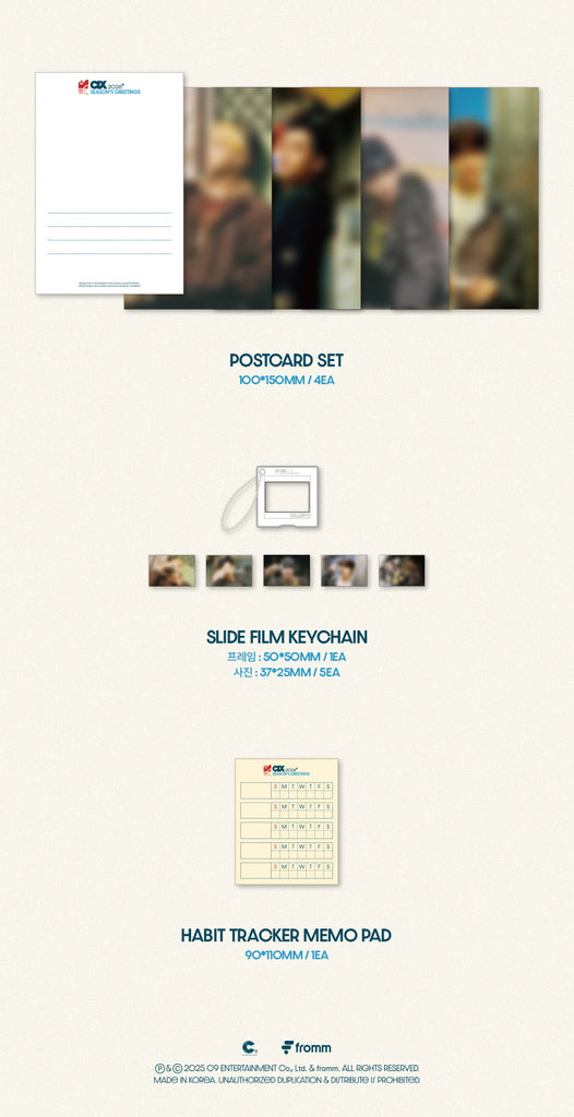 172p Diary + 26p Desk Calendar + 36p Mini Photobook + 4 Photocards + 4 Postcards + Silde Film Keychain + Habit Tracker Memo Pad