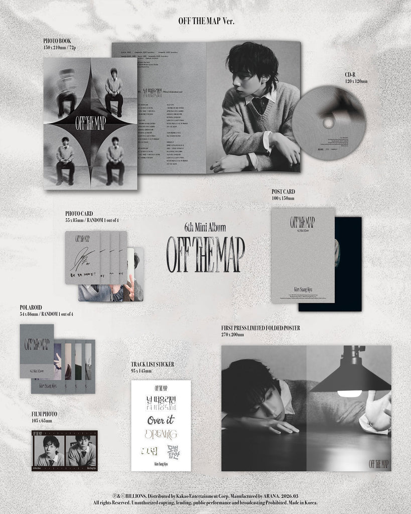 CD + 72p Photobook + Photocard (Random 1 out of 4) + Postcard + Instant Film (Random 1 out of 4) + Film Photo + Track List Sticker + Folded Poster (On Pack / First Press Limited)