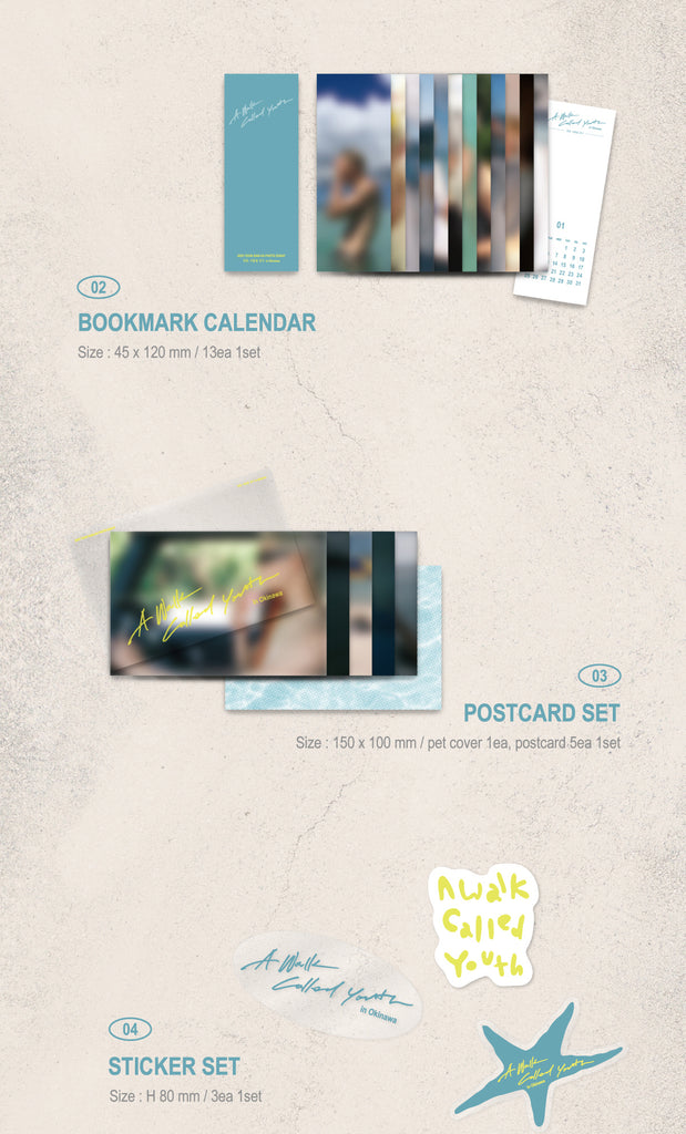 200p Photobook + 13 Bookmark Calendar + 5 Postcards + 3 Stickers + Film Photo Card + Folded Poster (On Pack)