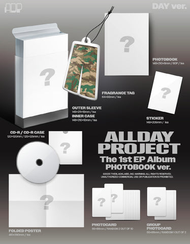 CD + 80p Photobook + Fragrance Tag + Sticker + Folded Poster + 2 Photocards (Random 2 out of 10) + Group Photocard (Random 1 out of 2)