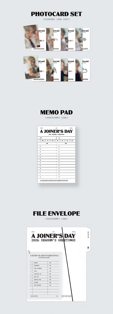 Desk Calendar + 64p Photobook + Diary + Photocard Set + Memo Pad + File Envelope + Message Card + Sticker + Tool Keyring