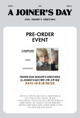 Pre-order Gifts will only be presented to products purchased during the pre-order period. If you place an order after the release date of the album, pre-order gifts will not be presented when the pre-order gifts are exhausted.