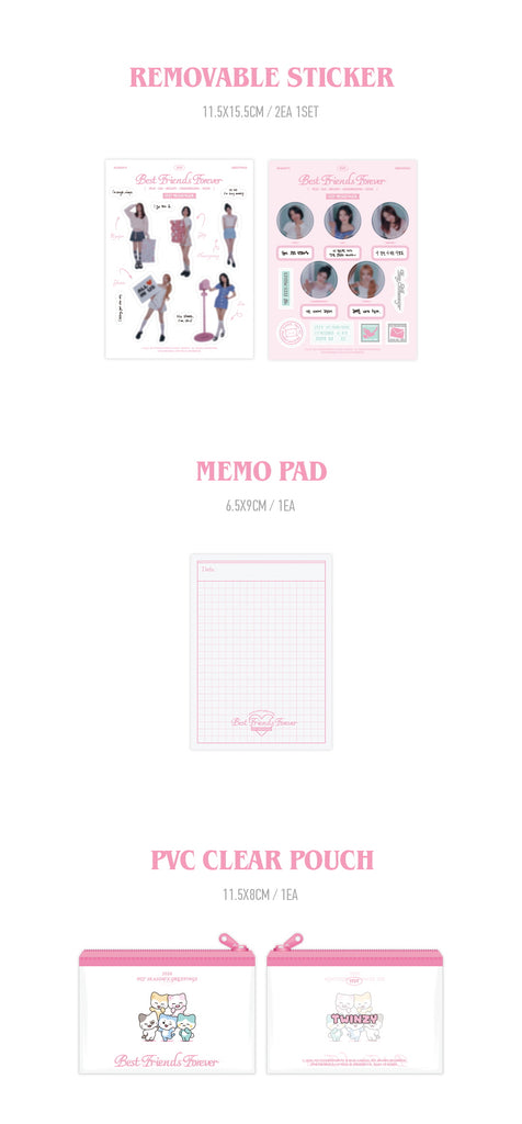 Desk Calendar + Diary + Mini Poster + Selfie Photocard + Removable Sticker + Memo Pad + PVC Clear Pouch + ID Photo + Polaroid + Message Card + Stamp Sticker
