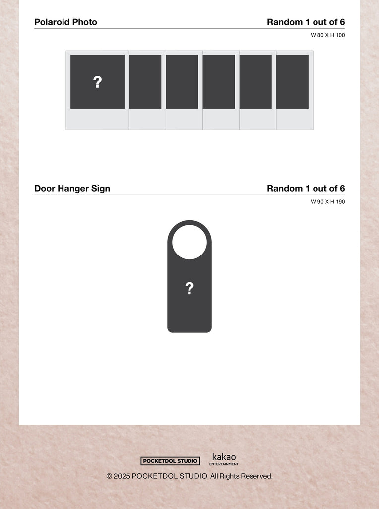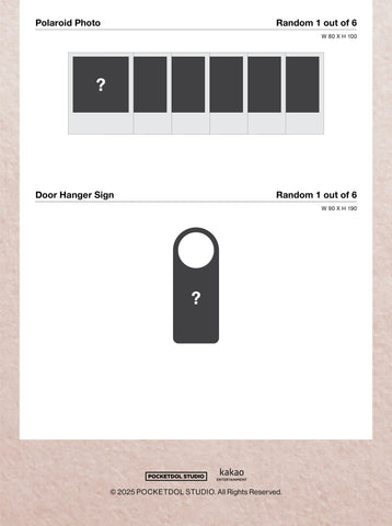 Photobook + 2 Photocards (Random 2 out of 36) + Postcard (Random 1 out of 6) + Folded Poster (On Pack) + Postage Stamp + Film Photo (Random 1 out of 6) + Door Hanger Sign (Random 1 out of 6)