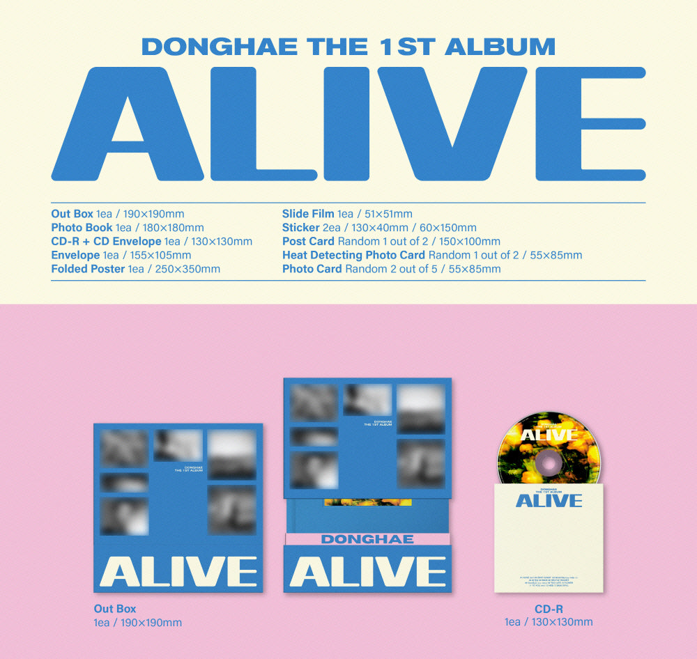 CD + Photobook + Folded Poster + Envelope + 2 Sticker + Slide Film + Heat Detecting Photocard (Random 1 out of 2) + Postcard (Random 1 out of 2) + 2 Photocard (Random 2 out of 5)