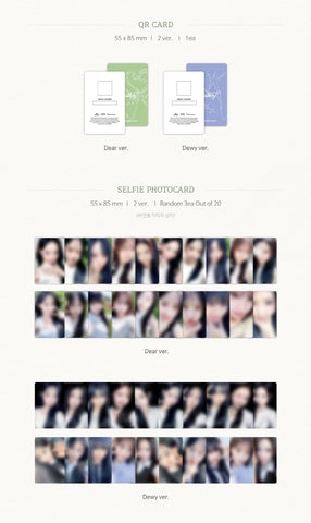 QR Card + 3 Selfie Photocards (Random 3 out of 20) + Jacket Photocard (Random 1 out of 5)