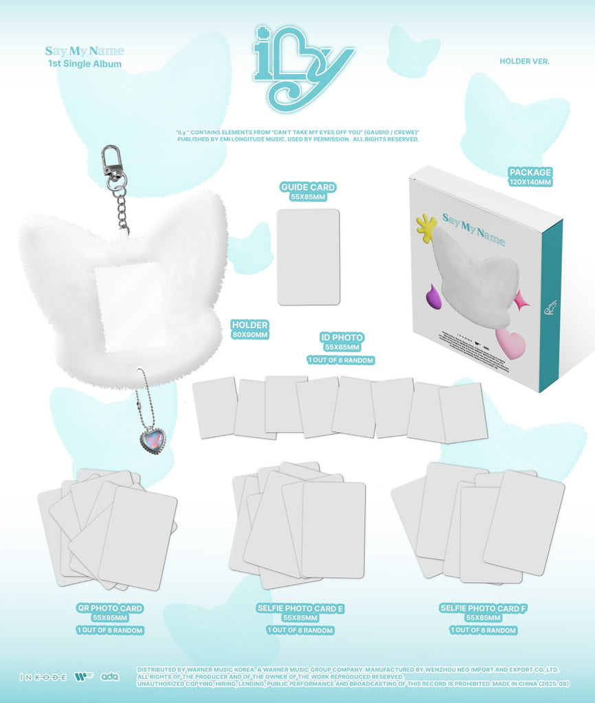 Guide Card + Holder + ID Photo (Random 1 out of 8) + QR Photocard (Random 1 out of 8) + Selfie Photocard E (Random 1 out of 8) + Selfie Photocard F (Random 1 out of 8)