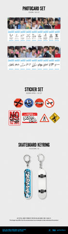 26p Desk Calendar + 104p Diary + 24p Mini Photobook + 12 Mini Calendars + 9 Film Photos + 18 Photocards + 8 Stickers + Skateboard Keyring