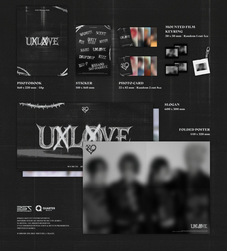 48p Photobook + 4 Message Postcard + Lenticular Card (Random 1 out of 4) + Heat-Sensitive Message Card (Random 1 out of 4) + Sticker + 2 Photocards (Random 2 out of 8) + Mounted Film Keyring (Random 1 out of 4) + Slogan + Folded Poster